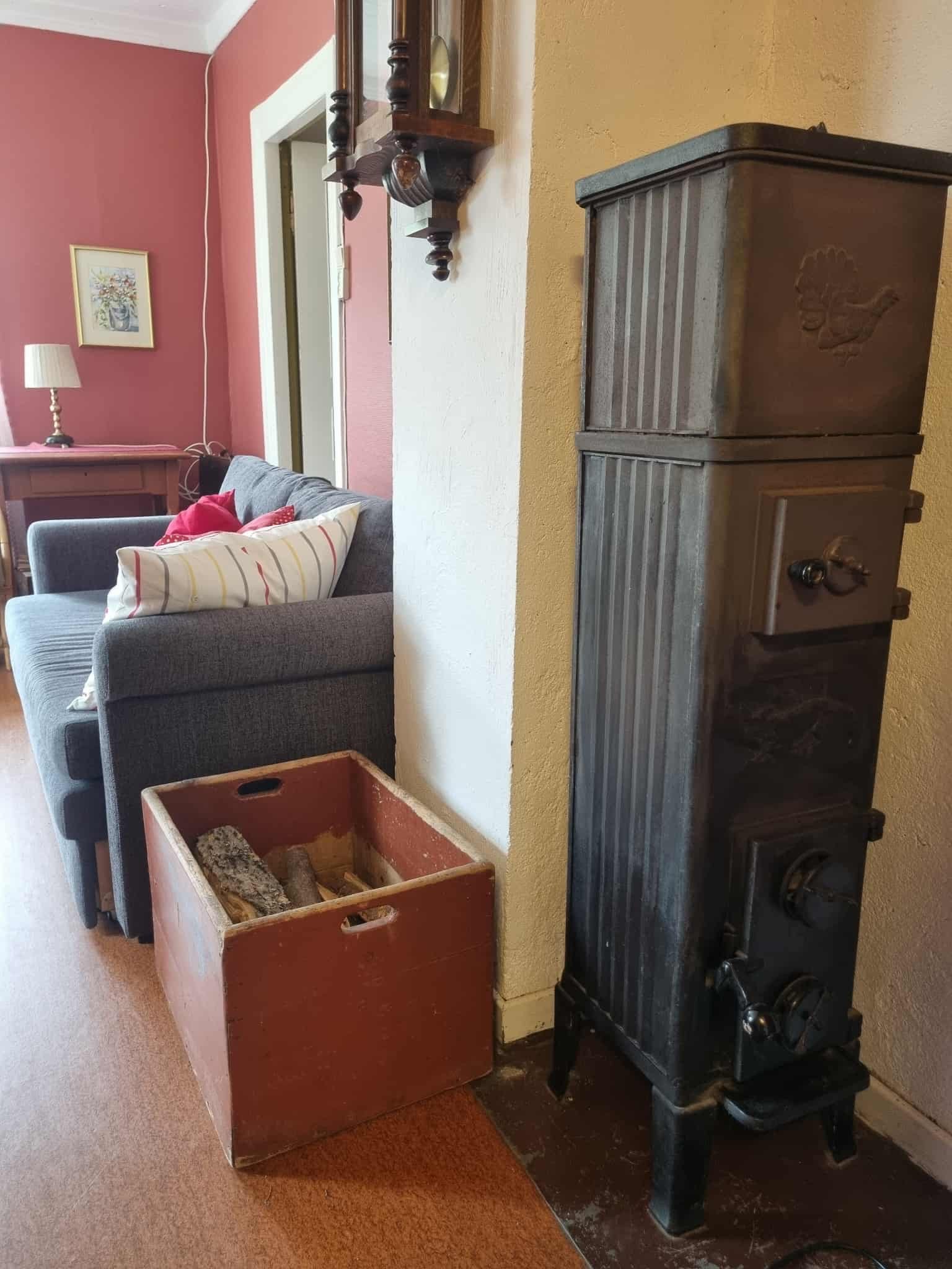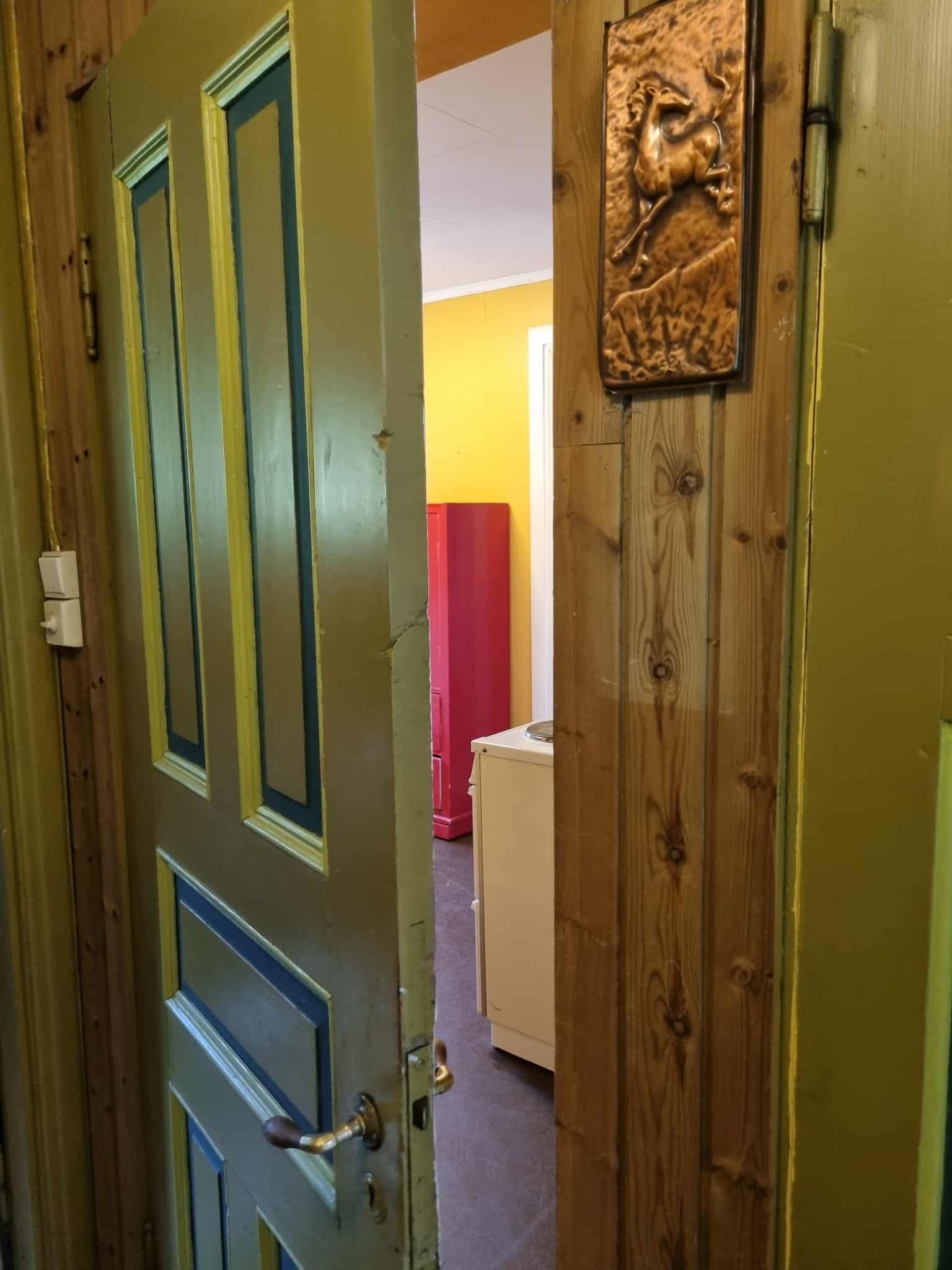 Kårdelen ligg i 1. etasje i hovudhuset på garden. Her bur du tett på historia, med tømmerveggar, rosemalte skap og ein atmosfære som gir ro i sjela.