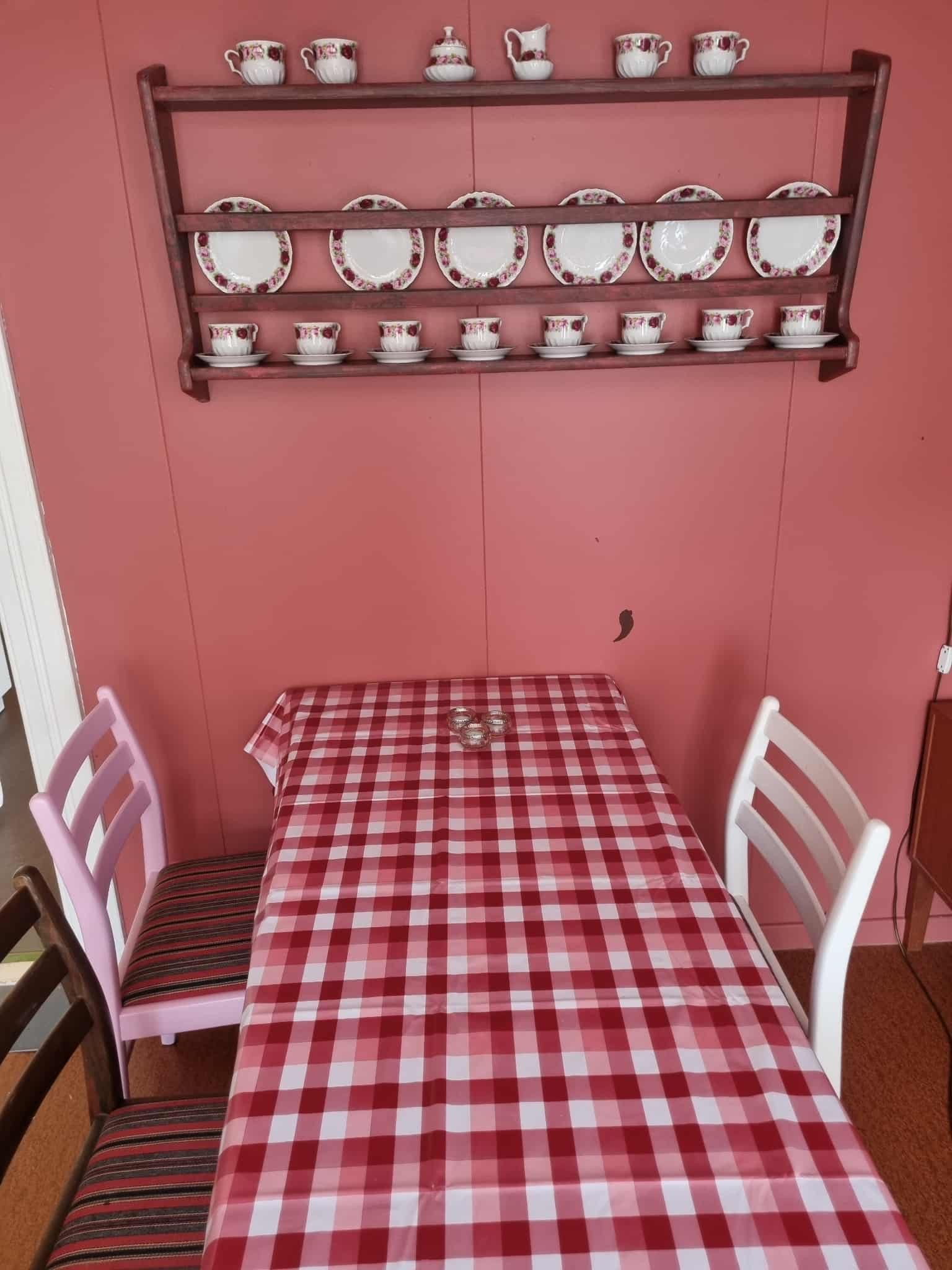 Kårdelen ligg i 1. etasje i hovudhuset på garden. Her bur du tett på historia, med tømmerveggar, rosemalte skap og ein atmosfære som gir ro i sjela.